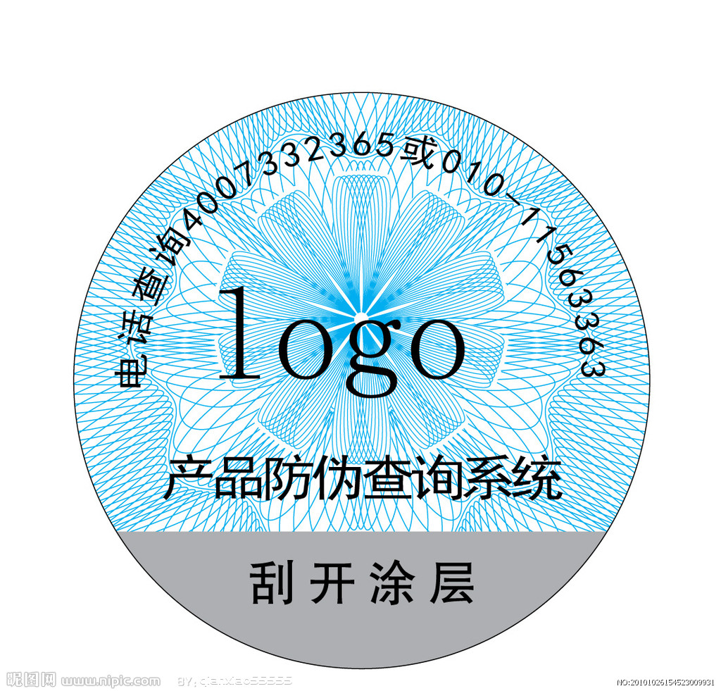 1.激光刮開式防偽標(biāo)簽介紹 激光刮開式防偽標(biāo)簽是激光全息防偽技術(shù)與電碼防偽技術(shù)的相結(jié)合的一種標(biāo)識(shí)物,它是在激光防偽標(biāo)簽表面某一指定區(qū)域噴上唯一、可用于真?zhèn)尾樵兊姆纻尉幋a,并用刮刮銀油墨將其覆蓋,從而達(dá)到多重防偽效果,即可通過激光標(biāo)簽本身的防偽性看其真?zhèn)危部赏ㄟ^800電話、400電話、手機(jī)短信、網(wǎng)絡(luò)等形式驗(yàn)證產(chǎn)品的真?zhèn)巍?