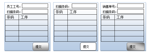 采集器工序交接掃描示意界面 采集器進(jìn)庫掃描示意界面 采集器發(fā)貨掃描示意界面