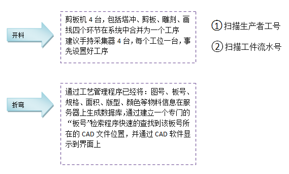 通過一個專門的工藝管理程序使得大家在統(tǒng)一的平臺上工作,達(dá)到數(shù)據(jù)共享,并自動通知到標(biāo)簽打印機(jī)打印標(biāo)簽以及生產(chǎn)工序掃描。